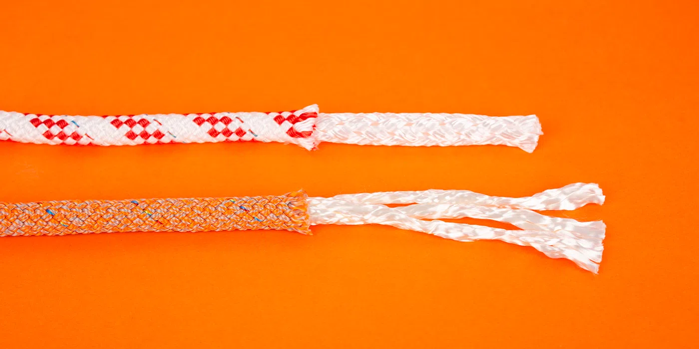 Höljet i dessa fall är tillverkat i 32-flätad polyester. Anledningen till att det inte är samma typ av flätning på skot och fall är enkelt. I ett fall vill du ha stumhet. Därför är det större del kärna och mindre del hölje. Eftersom att det främst är kärnan som bidrar till brottstyrkan.