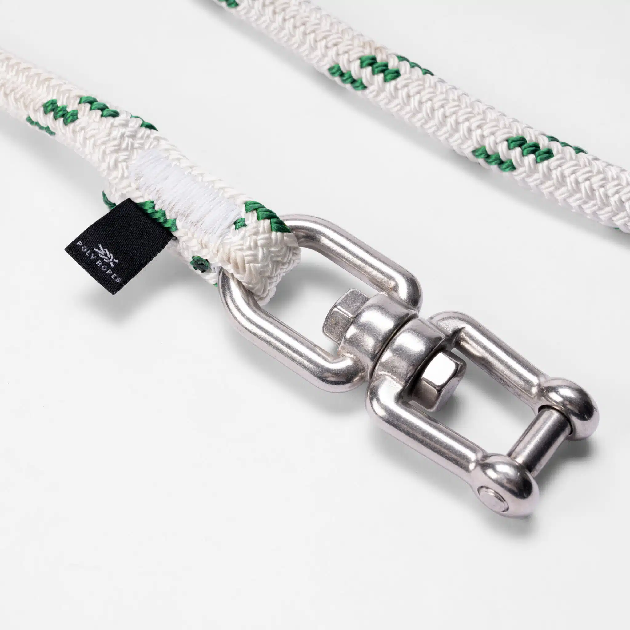 Istället för att använda en kaus och schackel i ena änden på linan har vi istället valt en svirvel. Med en svirvel slipper du att ankarlinan tvinnar sig när du ska ankra av. Svirveln gör att ankaret eller draggen kan rotera medans ankartampen håller sig still.