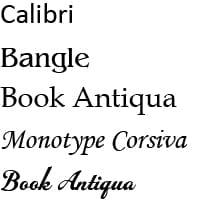 - Önskat typsnitt: Välj mellan: Calibri, Bangle, Book Antiqua, Monotype Corsiva, Inscrition