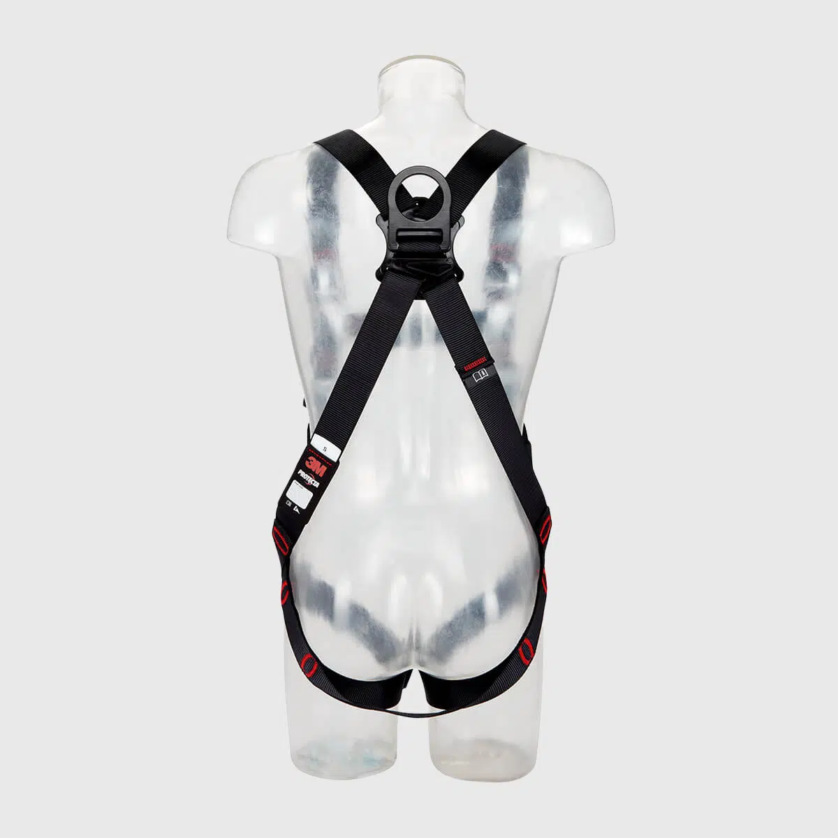 - 1 stor D-ring på ryggen för koppling till fallskydd.