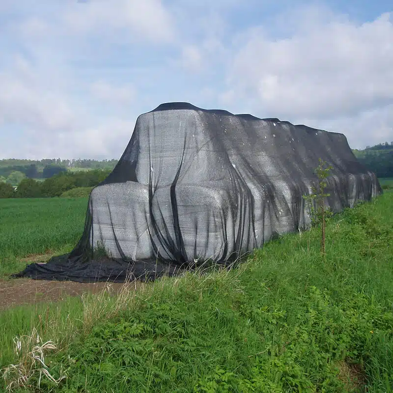 Vårt fågelskyddsnät för balar från JUTA har 5 års UV-skydd. Lätt att lägga på – lätt att ta bort. Verkar som vindskydd. Detta fågelskyddsnät gör att de vita balarna smälter in i miljön och konstruktionen gör att fåglarna inte vill sitta på nätet.
