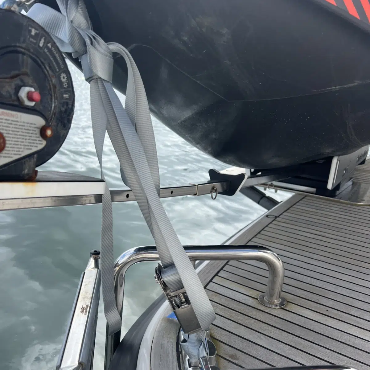 Spännband med rostfri vinsch och sydda öglor – perfekt för båten