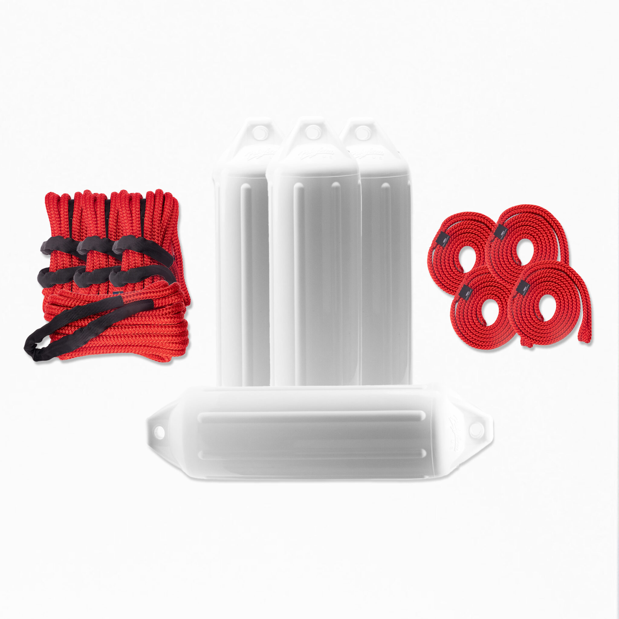 Festmacher-Set – weißen Fendern von Polyform US und roten Seilen von PolyRopes