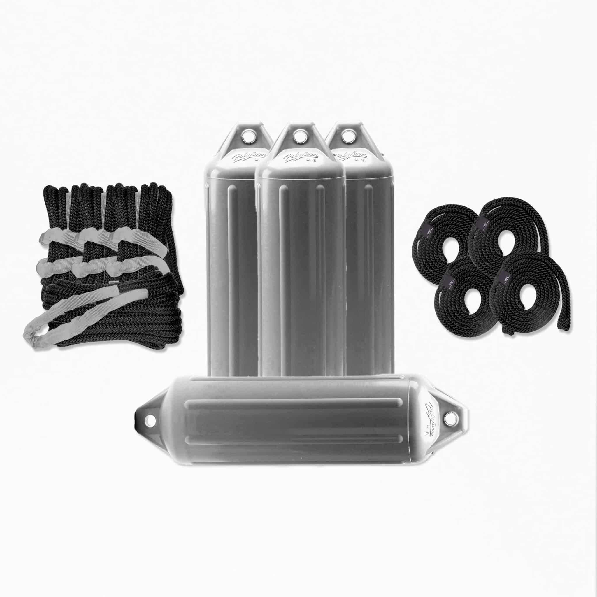 Festmacher-Set – grauen Fendern von Polyform US und schwarzen Seilen von PolyRopes