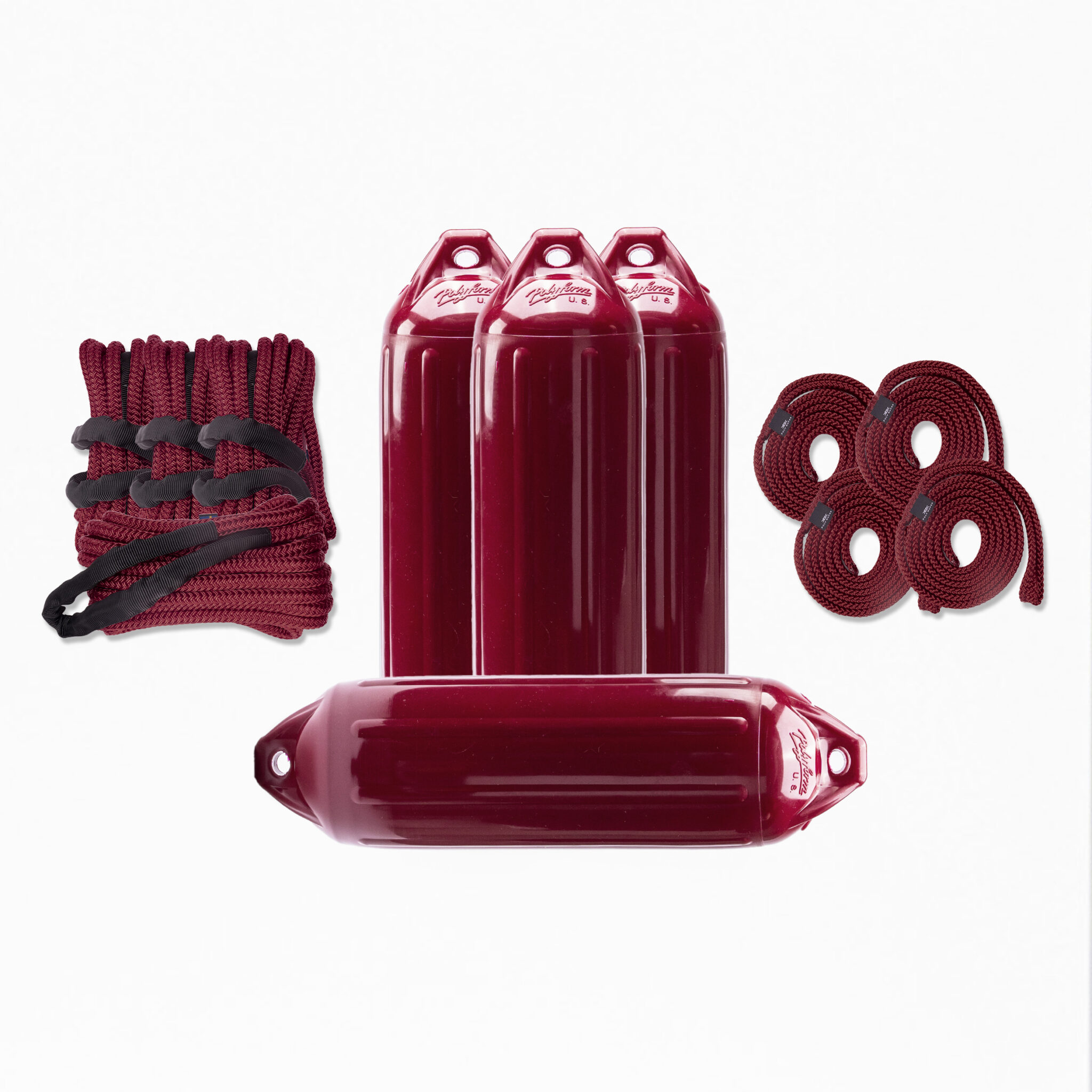 Festmacher-Set – weinroten Fendern von Polyform US und weinroten Seilen von PolyRopes